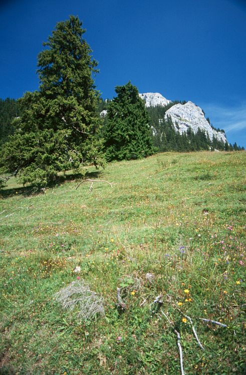 Im Hintergrund der Felsklotz des Brünnsteins (1619 m).
