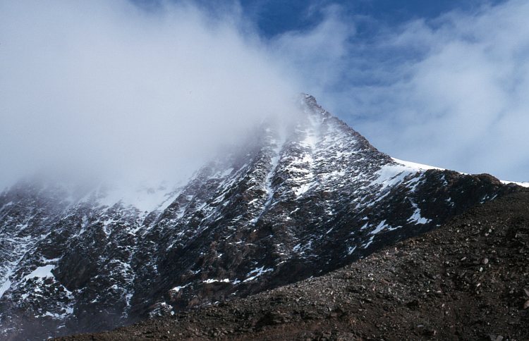 Blick vom Zwischbergenpass (3268 m) auf den Südgrat der Weissmies (4023 m).