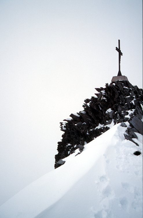 Das Gipfelkreuz auf dem Allalinhorn (4027 m).