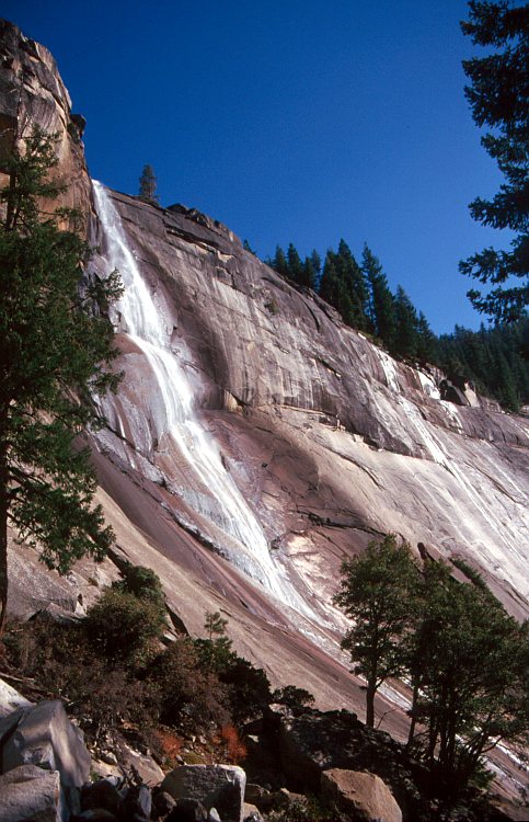 an zwei Wasserfällen, den 95 m hohen Vernal Fall und