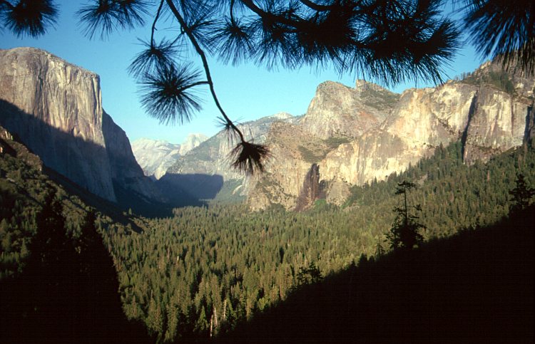 Links El Capitan mit seiner 1000 Meter hohen Wand, ganz hinten der Half Dome (2695 m).