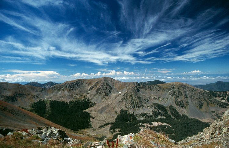Der Wheeler Peak (4011 m). Im Bild zu sehen ist das nördlich des Gipfels gelegen La Cal Basin, der Gipfel selbst befindet sich links außerhalb des Bildes.