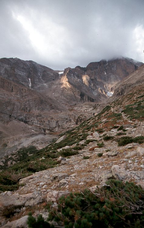 Der Blick geht auf die Ostflanke des Longs Peak.