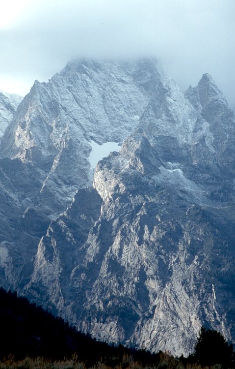 Die Gipfel der Teton Range ragen 2100 Meter über dem Talboden auf.