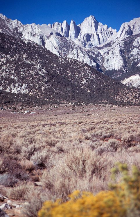 Im Bild rechts der Gipfel, daran links anschließend die Keeler Needle und die Day Needle.