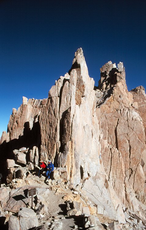 An der Grenze zum Sequoia Nationalpark, hier erreicht der Mt. Whitney Trail von rechts heraufkommend den Trail Crest.