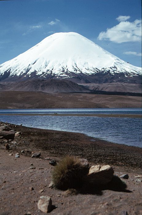Volcán Parinacota (6330 m), davor der Lago Chungará (4500 m).