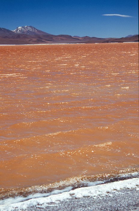 Über der Laguna Colorado (4778 m) erhebt sich der Cerro Negro (5703 m).