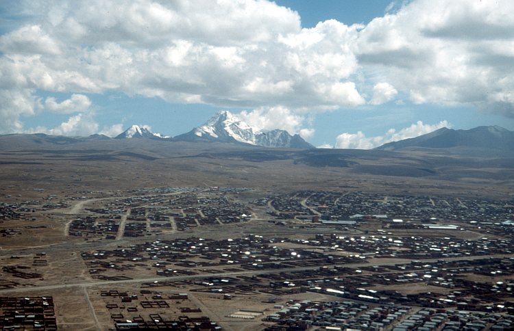 Huayna Potosí (6088 m) über dem Altiplano; im Vordergrund El Alto (4070 m).